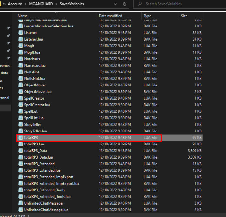 Now that you've backed up your totalRP3.lua open it with Notepad and ctrl+F to search your keyword.