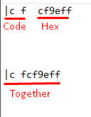 You want to prepare the code for applying color which is |c f